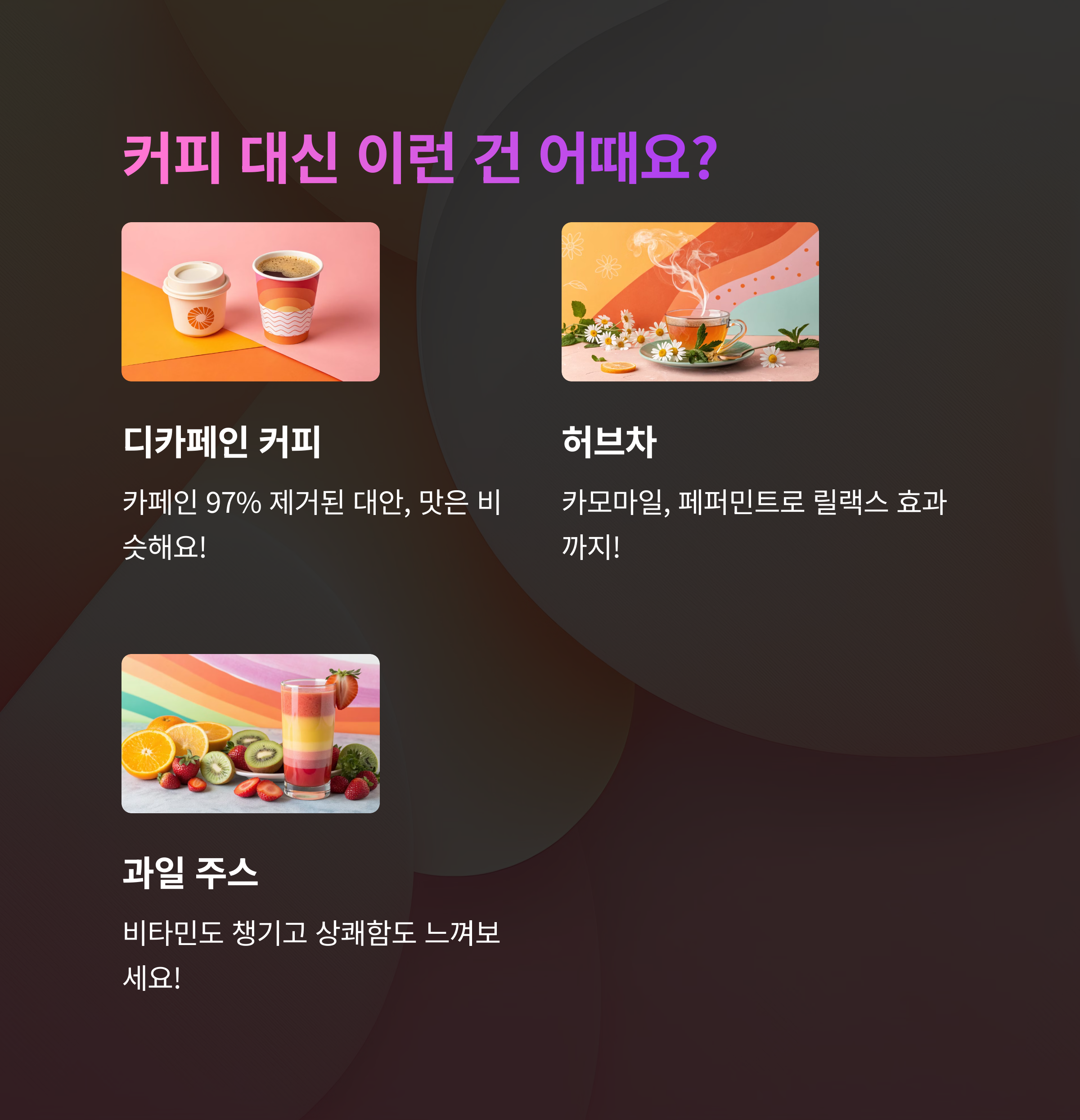 ✔ 커피 대신 건강한 대체 음료도 고려해보기!